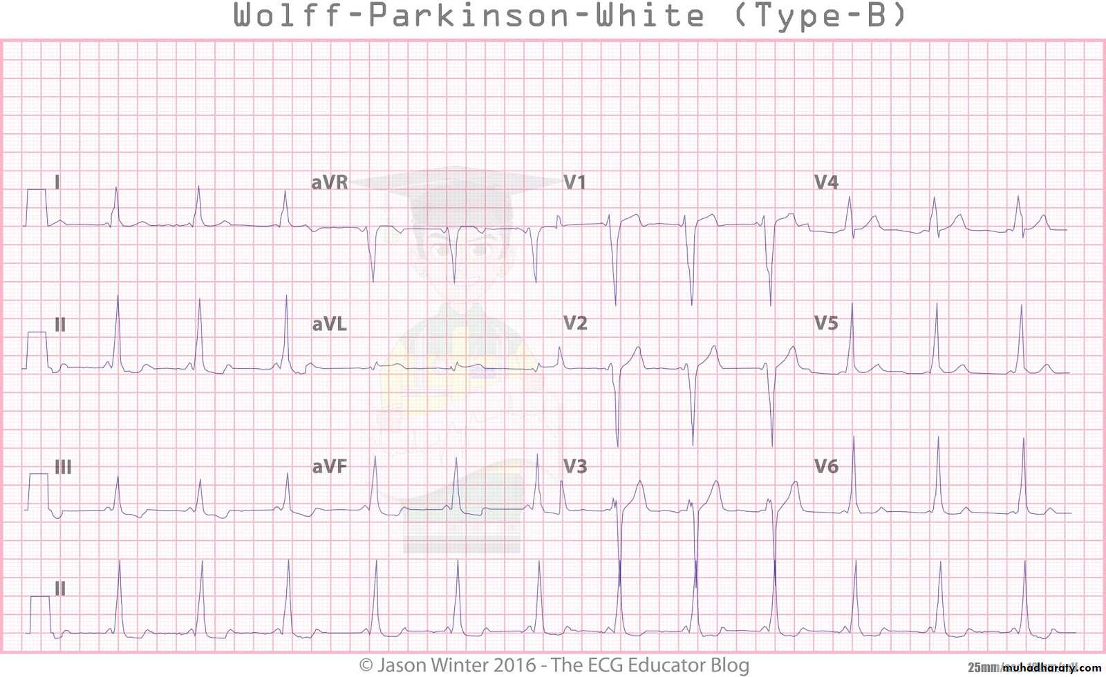 RIGHT sided pathway resulting in predominant S or QS wave- The ECG findings the Same as in type A but instead of dominant R wave in type A there is dominant S wave or QS pattern in V1 .