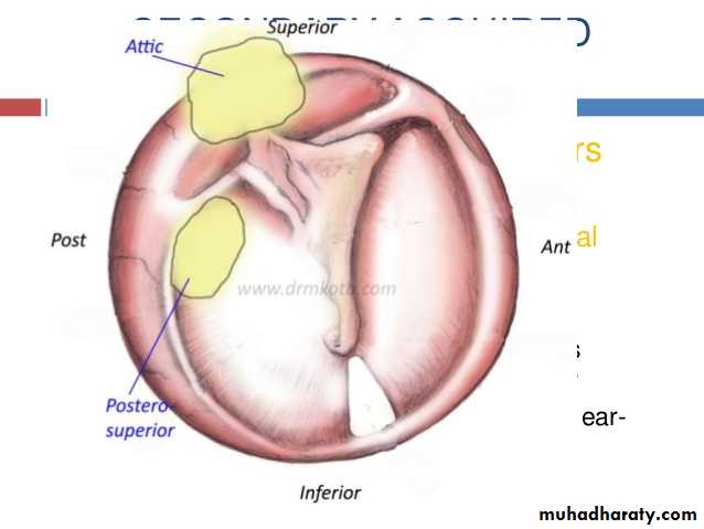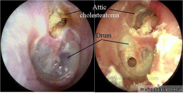 Disease is limited at attic region (pars flaccida) or extruteded into ext.canal.Extension into the tymp. Cavity +/- ossicular chain disruption.