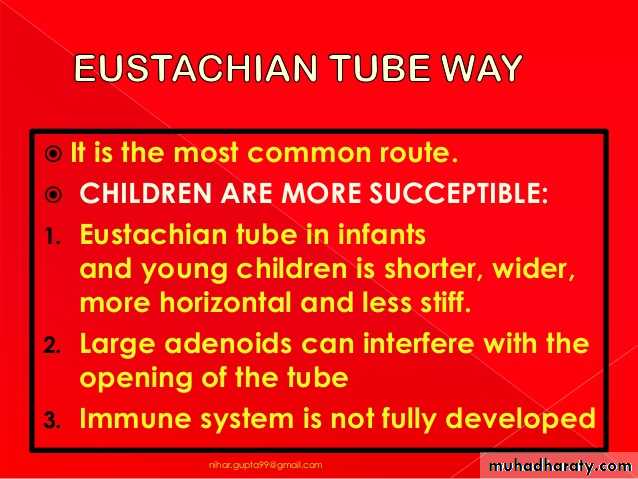 Exudation into the tympanic cavity /serous at beginning ----mucopurulent