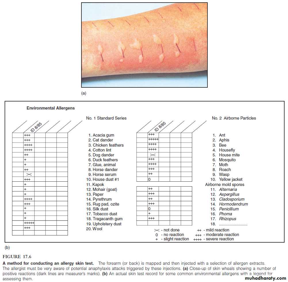 in vivo method to detect sensitivities is skin testing.patient’s skin is injected, scratched, or pricked with a small amount of a pure allergen extract (common airborne allergens (plant and mold pollen) and unusual allergens (mule dander, theater dust, bird feathers).