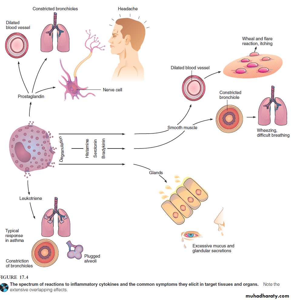3Histamine: is the fastest-acting allergic mediator and potent stimulator of smooth muscle, glands, and eosinophils.