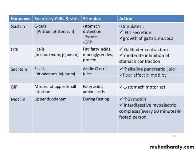 HORMONAL CONTROL OF GASTROINTESTINAL MOTILITY
