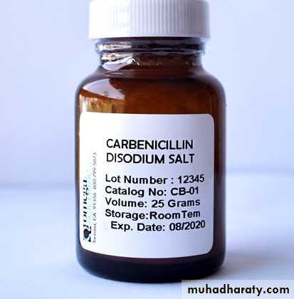 Indication:They are principally indicated for the treatment of chronic bronchitis and mild ear infections, both of which are usually due to Streptococcus pneumoniae and Haemophilus influenzae. They are also indicated for: urinary-tract infections, otitis media, sinusitis, chronic bronchitis,invasive salmonellosis, and gonorrhea.Amoxicillin is also used for typhoid fever and endocarditis prophylaxis. Antipseudomonals include both carboxypenicillins (carbenicillin and ticarcillin) and ureidopenicillins (piperacillin, azlocillin, and mezlocillin). Antipseudomonal penicillins are similar to the aminopenicillins in structure but have either a carboxyl group or urea group instead of the amine.The major advantage of carboxypenicillins is their activity against Pseudomonas aeruginosa (one of the major pathogens responsible for nosocomial pneumonia) and certain indole-positive Proteus species that are resistant to aminopenicillins. Ticarcillin is stronger against P. aeruginosa and Enterobacter species than carbenicillin.Against anaerobes and Gram-positive organisms, carboxypenicillins generally have the same spectrum of activity as penicillin G. However, they are substantially weaker in comparison with penicillin G.Ureidopenicillins have greater activity against P. aeruginosa compared to carbenicillin and ticarcillin. Piperacillin is the most potent of the extended-spectrum penicillins against Pseudomonas. The spectrum of piperacillin and mezlocillin is extended to include Klebsiella, Enterobacter, Citrobacter.All antipseudomonals are destroyed by β-lactamases.The extended-spectrum penicillins are not used in the treatment of infections caused by Gram-positive bacteria because penicillin G and aminopenicillins are more potent against these organisms. Antipseudomonals penicillins may be used in combination with Aminoglycosides.