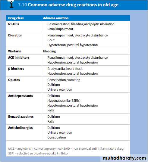 Presentations in older patients have a more diverse differential diagnosis because multiple pathology is so common. There are frequently a number of causes for any single problem, and adverse effects from medication often contribute