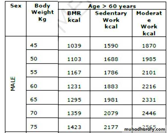 Energy need in the elderly may increase due to the diseases, injuries and fractions.