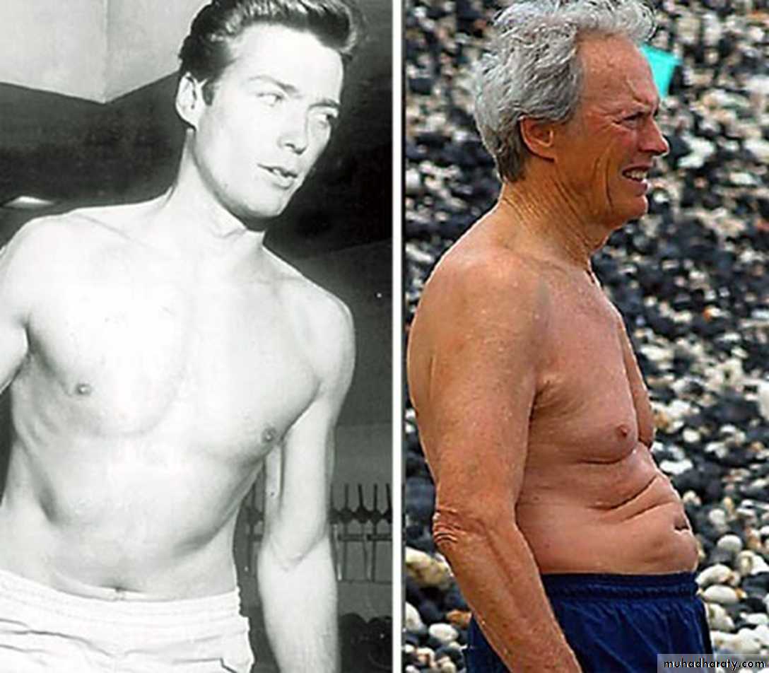 • The older people becomes shorter because the vertebrae becomes less dense due to loss of fluid in the cushion of tissues and becomes thinner.