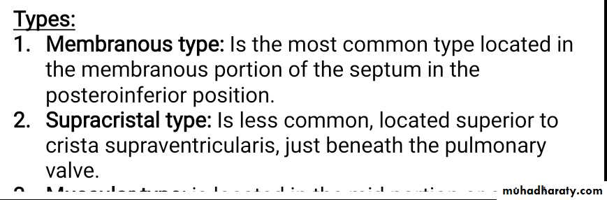 Supracristal type: Is less common, located superior to crista supraventricularis, just beneath the pulmonary valve.