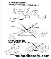 1- Hospitalization with complete physical rest in 1st 2–3 weeks .2- A neutral position with the feet at a right angle to the legs, knees slightly flexed, and hips and spine straight is achieved by use of boards.