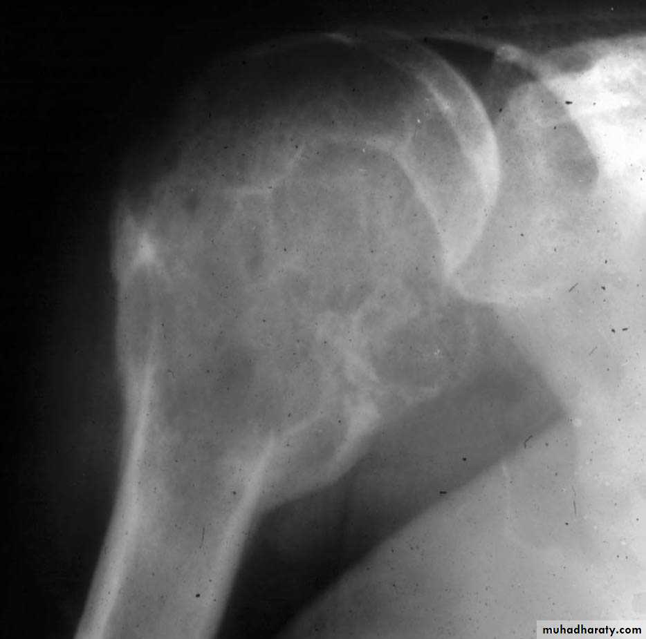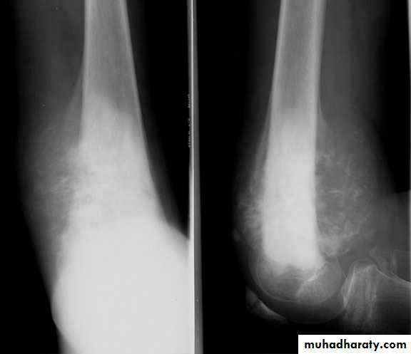 Soft tissue invasion sun-ray appearancePeriosteal elevation Codman`s triangle