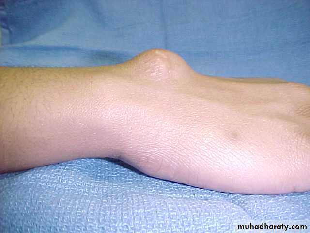 Commonest swelling in the wristPathology : myxoid degeneration in a ligament or capsule