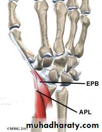 Tenosynovitis of the compartment of APL & EPBCause : overuse