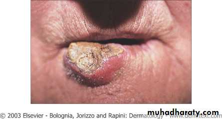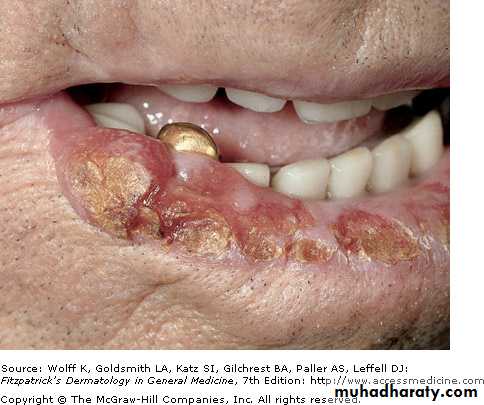 Actinic cheilitis : AK involving lower lip