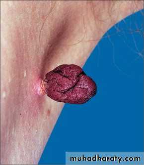 Treatment: simple scissor excision, electrodesiccation