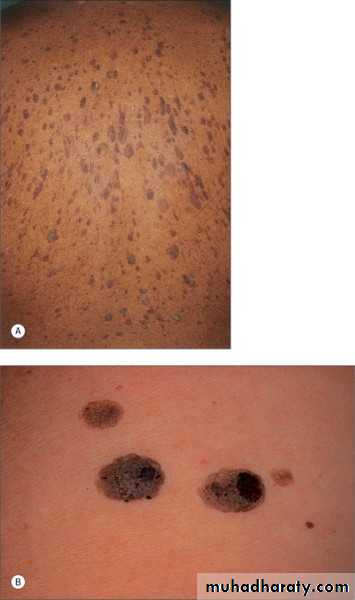 A few nevi are present in early childhood, but they increase in number, reaching a peak in the third decade of life and tend to disappear with increasing ageCaucasians in general have greater numbers of nevi than do darker-skinned