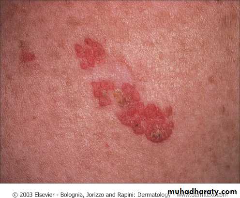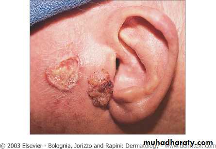 Common in caucasian middle-aged individualsCan develop any where except mucosal surfaces and plams and soles