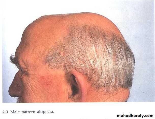 Increased hair follicle sensitivity to androgens leading to change from terminal to vellus hair follicles .Cause:
