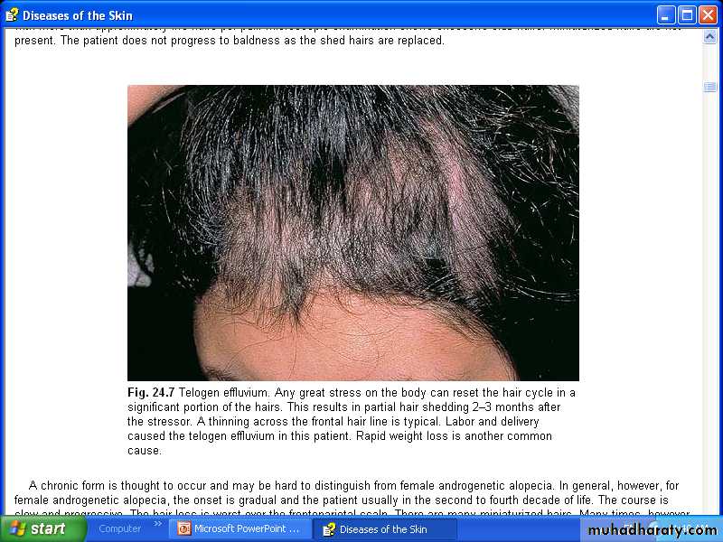 A- Normally 100-hair fall/day, a common cause.B- Neonatal, 3 months after birth.