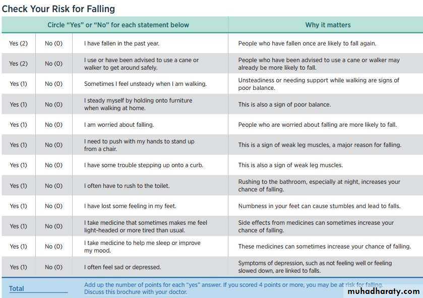 • Fear of falling increased dependency Depression
