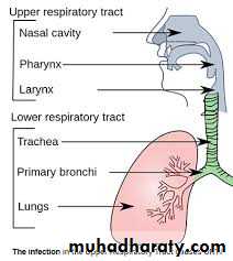 Lower respiratory tract: trachea, the bronchi, broncheoli and the lungs.
