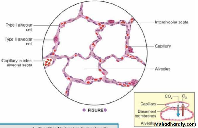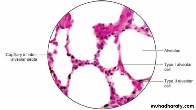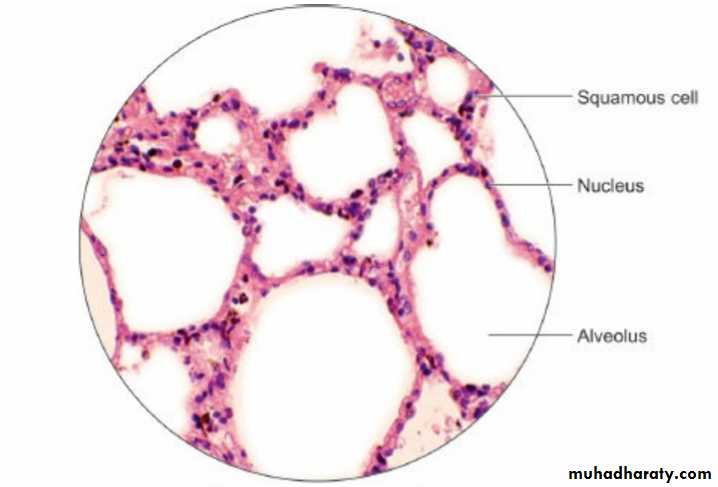 1. Alveolar Type I Cell (Squamous alveolar epithelial cell)These elongated thin cells line the alveoli and cover a large surface area (approximately 95% of the alveolar surface)
