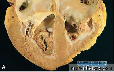 4- Mitral valve stenosis (e.g., after rheumatic heart disease) results in left atrial dilation which is a site of profound stasis and a prime location for development of thrombi.