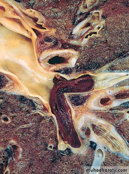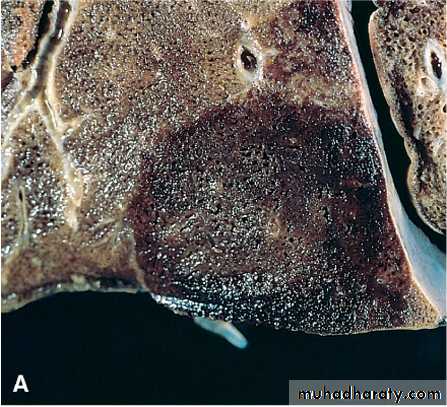 Vascular occlusion can have no or minimal effect, or can cause death of a tissue or even the individual. The major determinants of the eventual outcome include1- Nature of the Vascular Supply The presence of an alternative blood supply is the most important determinant of whether occlusion of a vessel will cause damage. For example,, lungs have a dual pulmonary and bronchial artery blood supply; thus, obstruction of small pulmonary arterioles does not cause infarction in an otherwise healthy individual with an intact bronchial circulation. Similarly, the liver, with its dual hepatic artery and portal vein circulation, and the hand and forearm, with their dual radial and ulnar arterial supply, are all relatively resistant to infarction. In contrast, renal and splenic circulations are end-arterial, and obstruction of such vessels generally causes infarction.