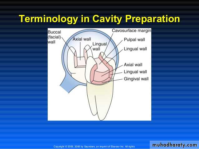 Internal Wall: prepared surface that does not extend to the external tooth surface.1-Axial wall : parallel with long axis of the tooth.