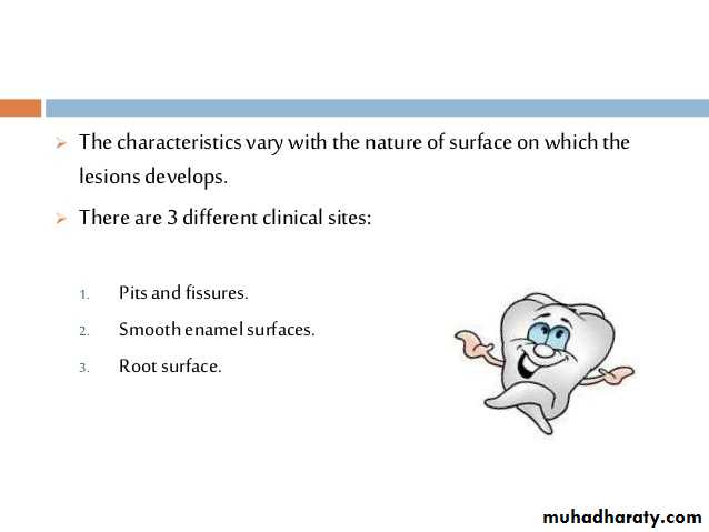 1-Enamel pits and fissures,2-Enamel smooth surfaces, or