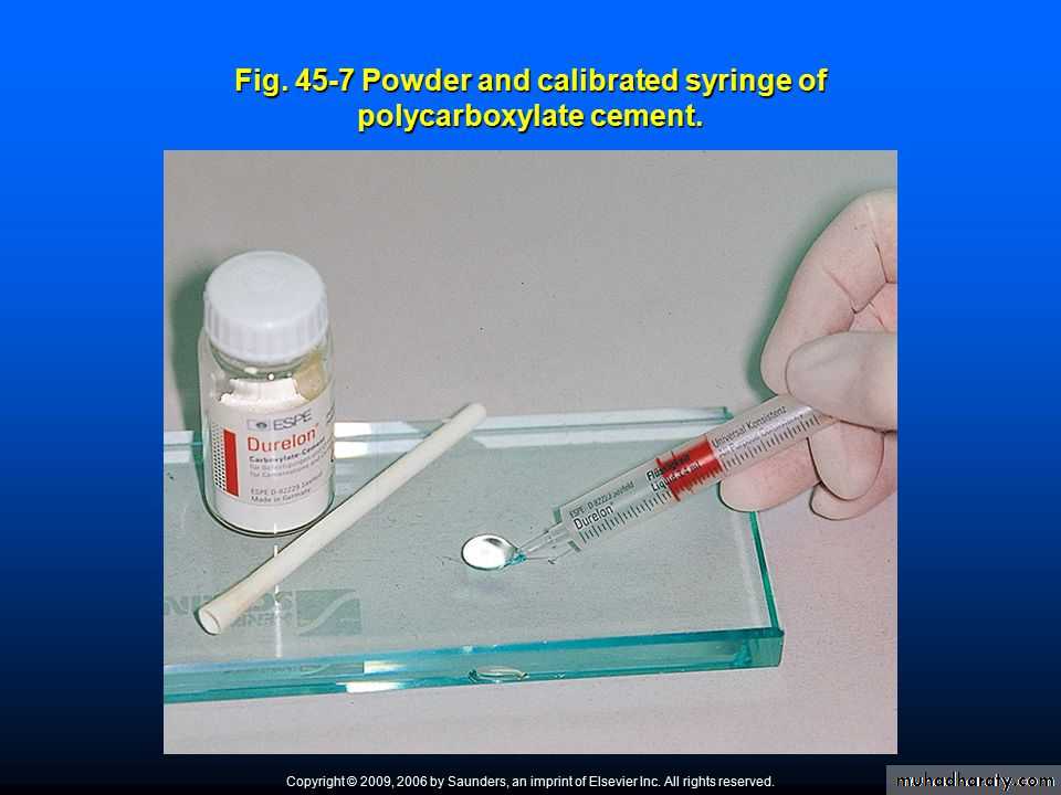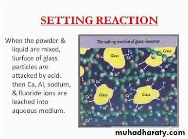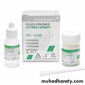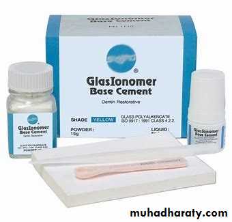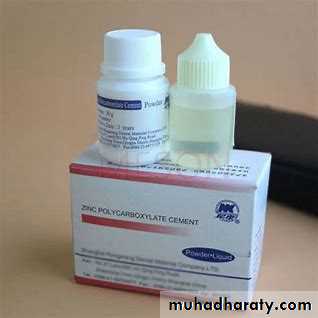 1. It is one of the dental cement systems which have chemical adhesion to enamel and dentin, by the ability of the carboxylate groups in the cement molecule to chelate to calcium in enamel and dentin.2. The large sizes of polyacrylic acid molecules, which can’t penetrate through dentinal tubules, make this cement low irritant to the pulp, so this cement is used as a base or for cementation with sensitive teeth.