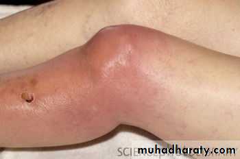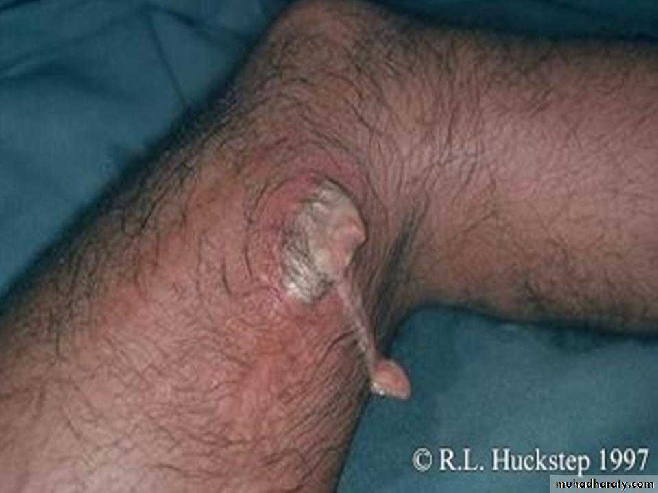 3- if the infection untreated it will spread to bone and soft tissues to form abscesses and sinuses. Joint may end by bony ankylosis and deformity.