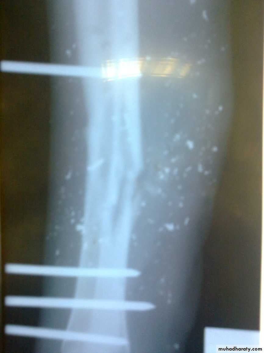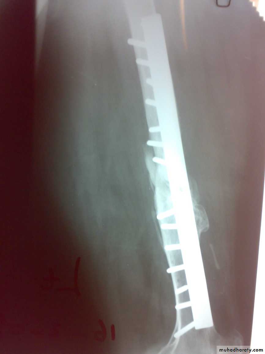 If fixation unstable , it is removed and replaced by external fixation.