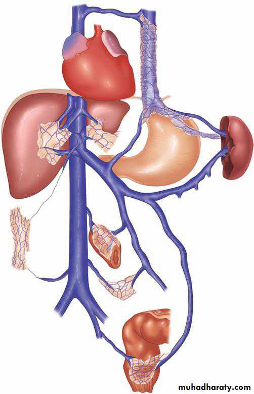 As portal venous pressure increases, the collateral communications with the systemic circulation dilate, and a large amount of blood may be shunted around the liver and into the systemic circulation.