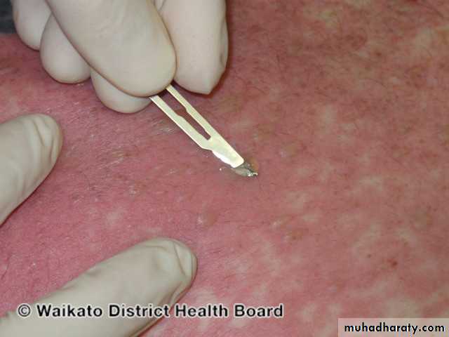 Unroof vesicle and scrape base w/ sterile №15 scalpel bladeSmear onto clean glass slide