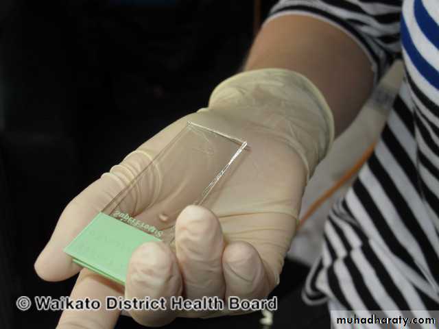 Stain w/ Giemsa, methylene blue or Wright’s stain