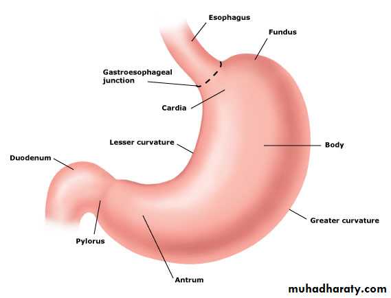 Anatomically, the stomach is usually divided into two usually major parts: (1) the body and (2) the antrum.