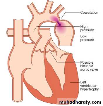 BP is raised in the arms, normal in the legsAuscultation: