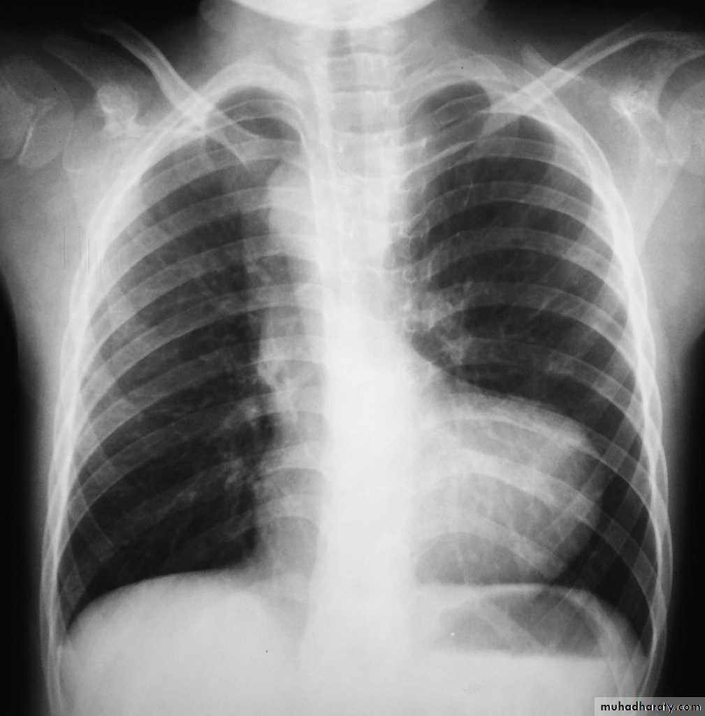 Oligemic lungs: reduced pulmonary blood flow