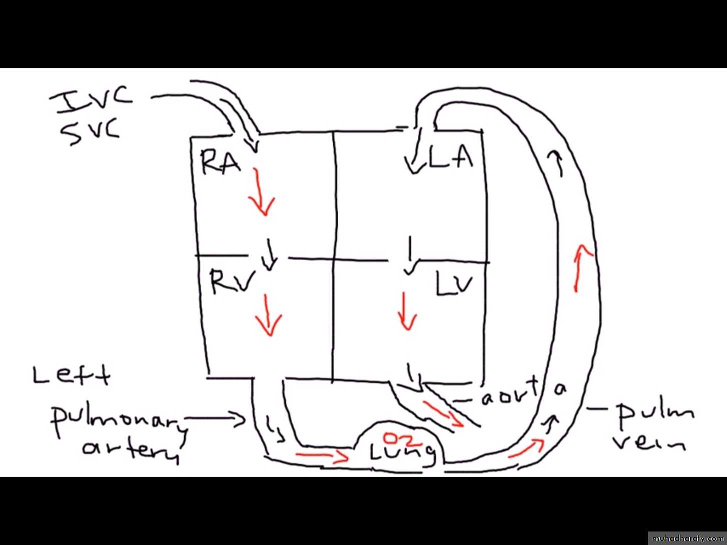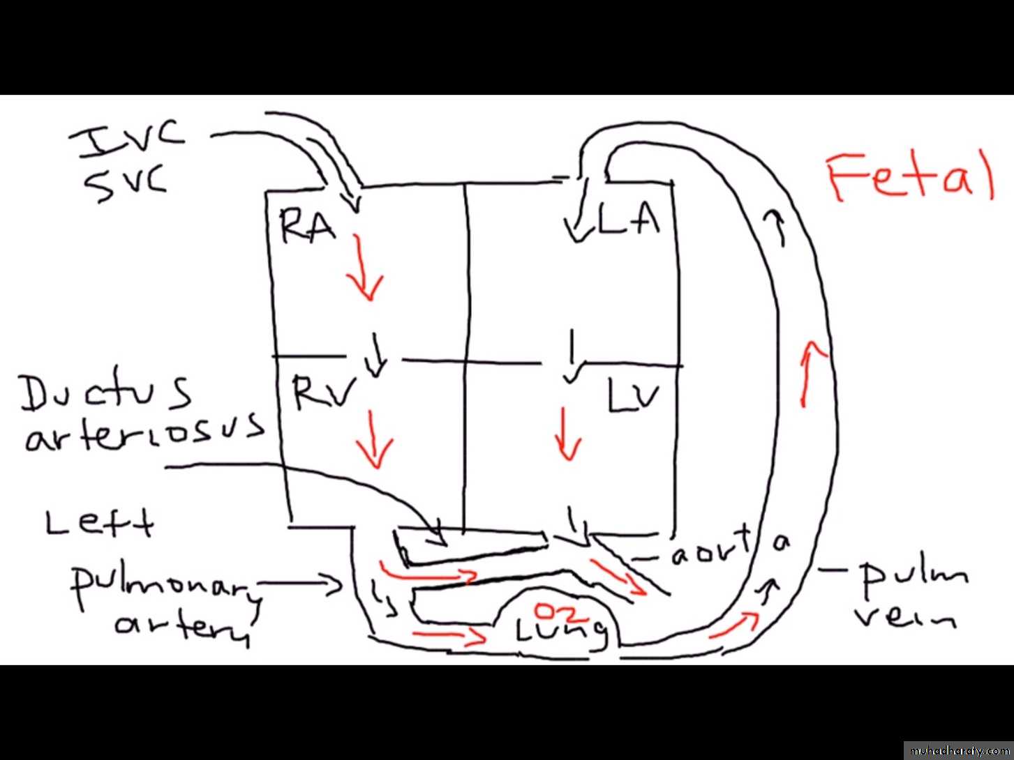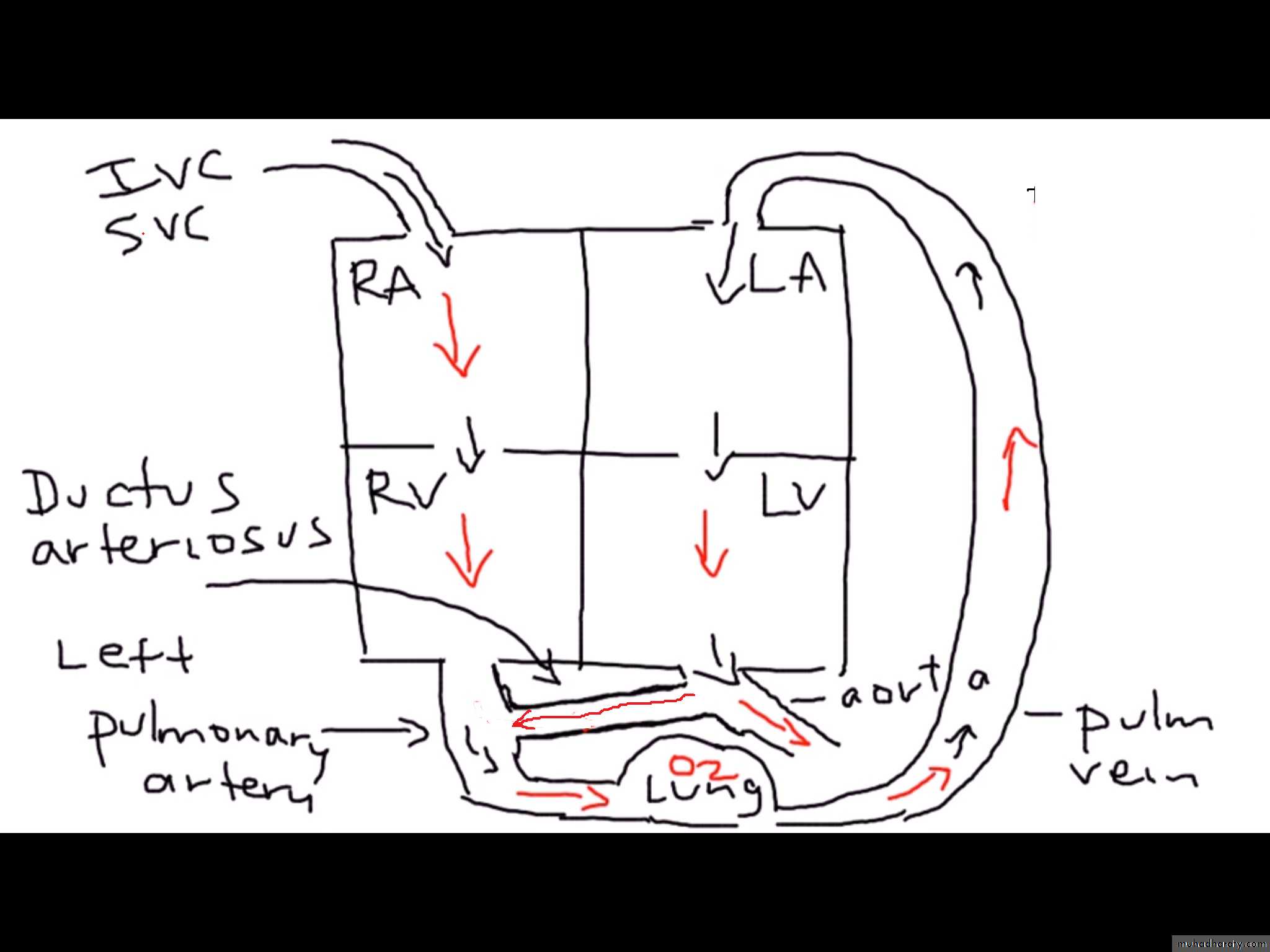 The shunt involves PA, LA, LV, & aortaThe RV and RA are not involved in the shunt