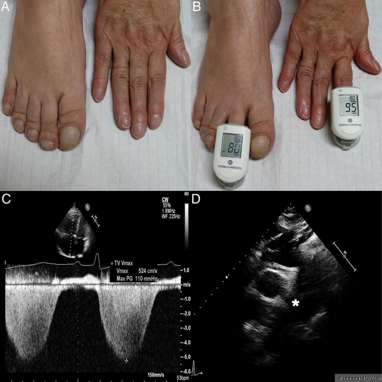 Eisenmenger syndrome with differential cyanosis:Cyanosis of the toes but not the fingers