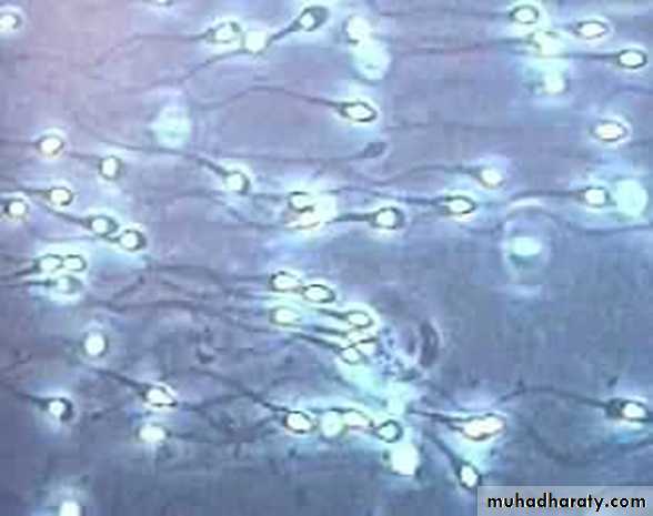 • Agglutination of spermatozoa means that motile spermatozoa stick to each other, head to head, midpiece to midpiece, tail to tail, or mixed, e.g. midpiece to tail.