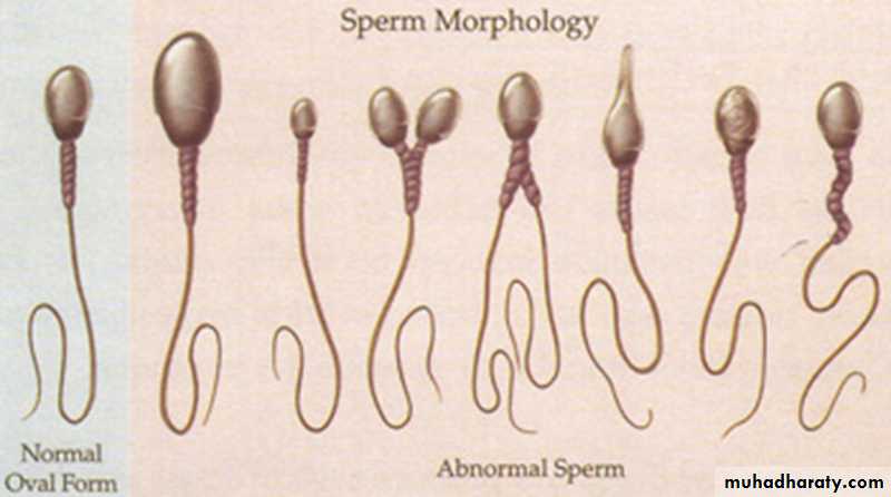 • Oligozoospermia; sperm conc. less than 15 × 106 spermatozoa per ml• Teratozoospermia; normal sperm morphology is <4% kruger strict criteria