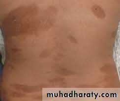 3. Generalized morphea: plaques coaleasce affecting the entire trunk except nipple, can involves the extremities, it is disabiling causing difficulty in breathing,