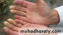 Cutaneous manifestations of scleroderma:1. Hardening of skin (hard to pinch)