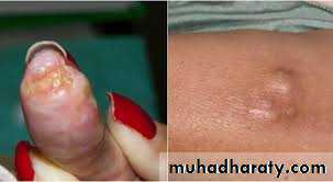 1. Plaque-type : present as white indurated plaque surrounded by lilac border2. Deep morphea: invlove deep dermis, subcutis +/- fascia