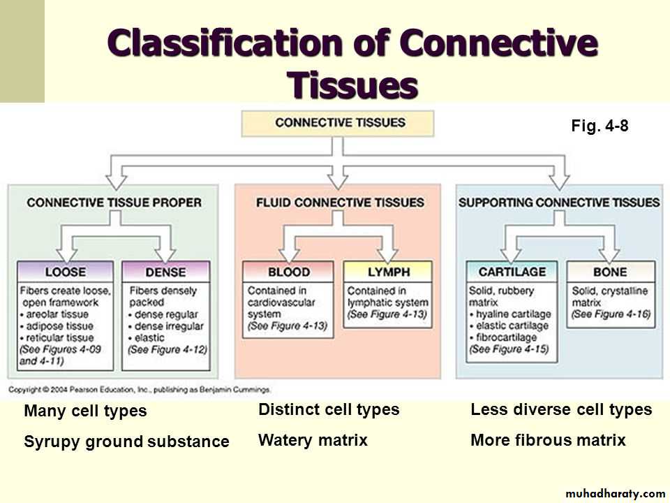 With the exception of blood and lymph, the connective tissue consists of cells and extracellular material called matrix.The matrix consists of fibers, ground substance, and tissue fluid.
