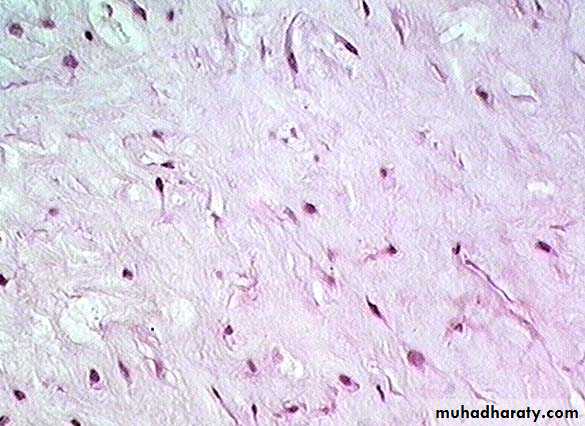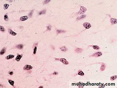 4-Mesenchyme tissue : it is made up of smalls cells with slender branching process that join to form a fine network. It is embryonic connective which is consist the tissue of embryo Fig(3).