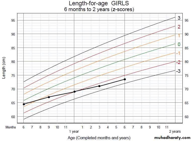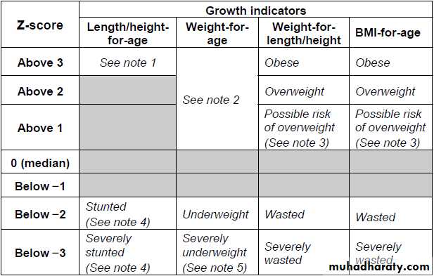 •Stunting is diagnosed when the child height is less than -2SD of the WHO growth charts.