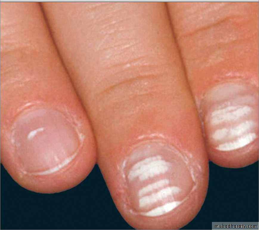 5- leukonychia (white nails).