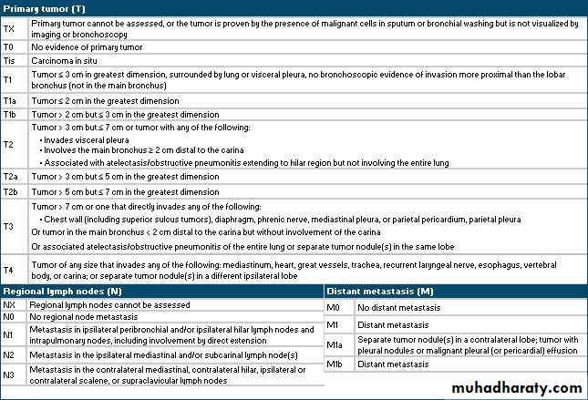 1 CXR: solitary pulmonary nodule, pneumonic infiltrate, pleural effusion 2-CT scan: for evaluation of the primary tumor, ,the assessment of regional lymph node involvement3-Bronchoscopy: Flexible fiberoptic bronchoscopy is an important tools in the diagnosis of carcinoma of the lung. Bronchial biopsy, brushings, washings, and transbronchial aspiration may be used to establish the diagnosis