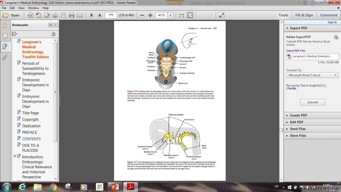 The most distinctive feature in development of the head and neck is the presence of pharyngeal arches, clefts and pouches.